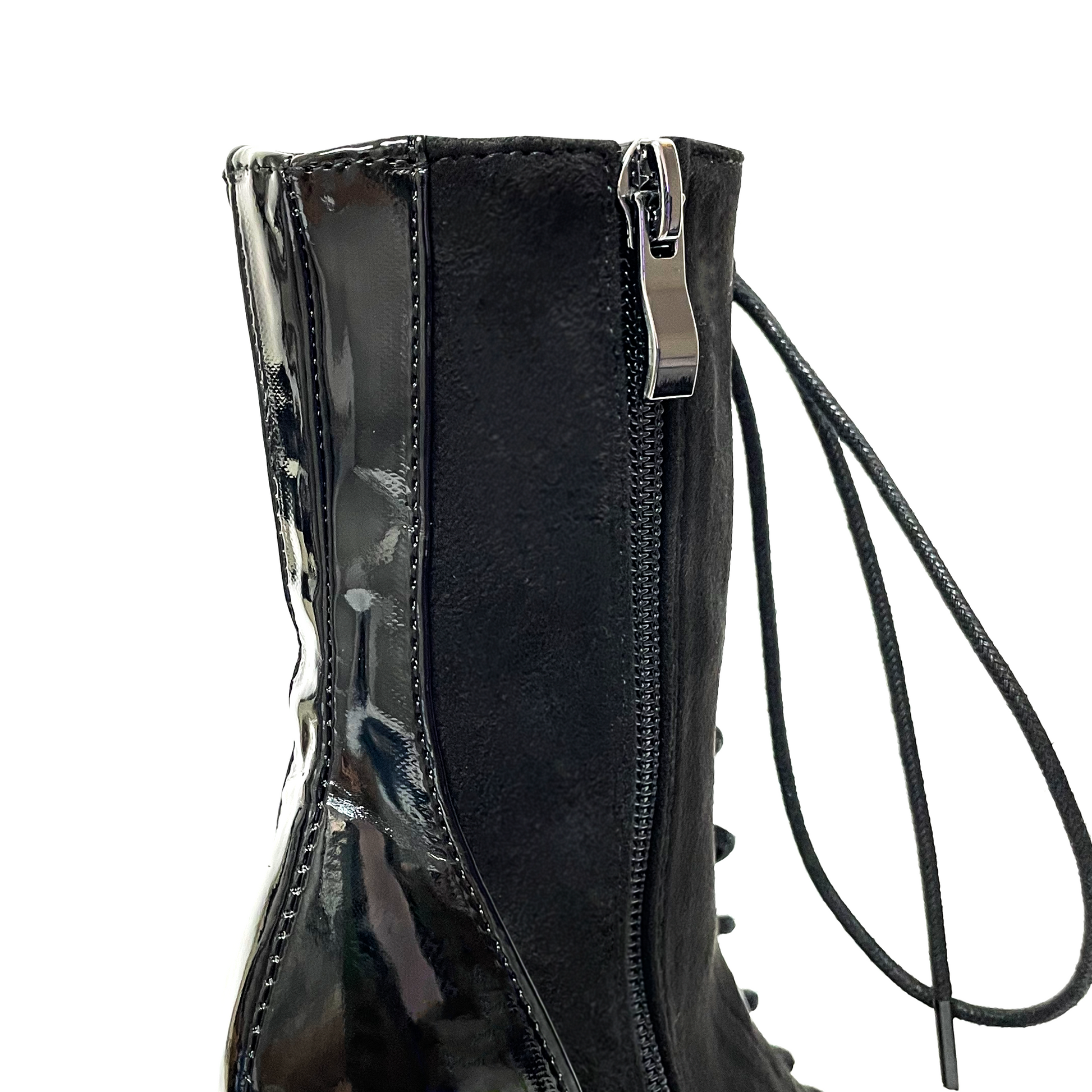 Fabricado con un suave tejido que da una gran sensación de confort. Parte trasera hecha con charol para darle un toque de sofisticación y estilice la parte trasera abarcando tacón, talón y cremallera. Completamente acordonado delante, incluso la punta, asegurando así un ajuste perfecto en cualquier tipo de pies (anchos o estrechos). Solapa interior para que los cordones no toquen tu pie... por eso si tienes los pies muy sensibles, ¡este modelo te va a encantar!