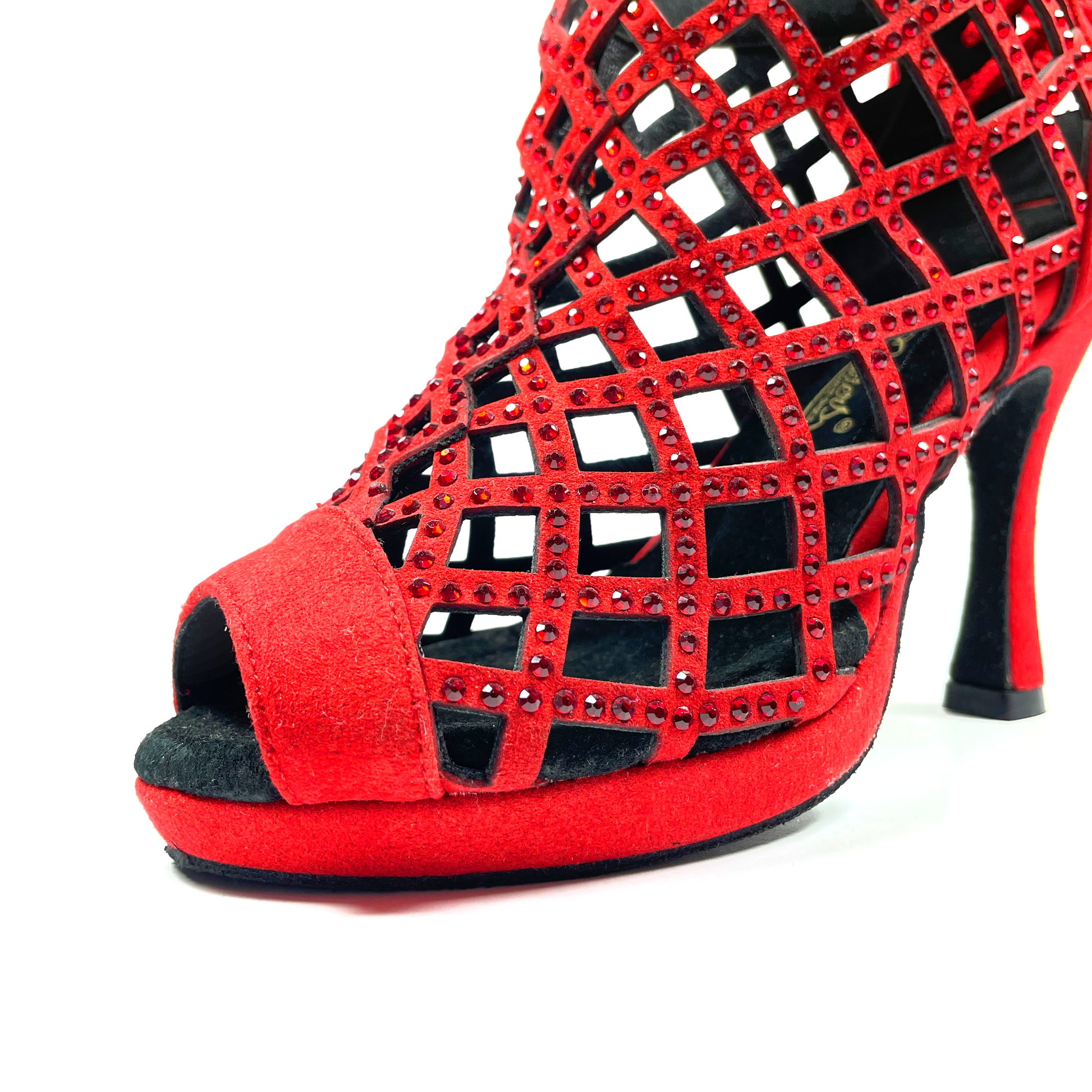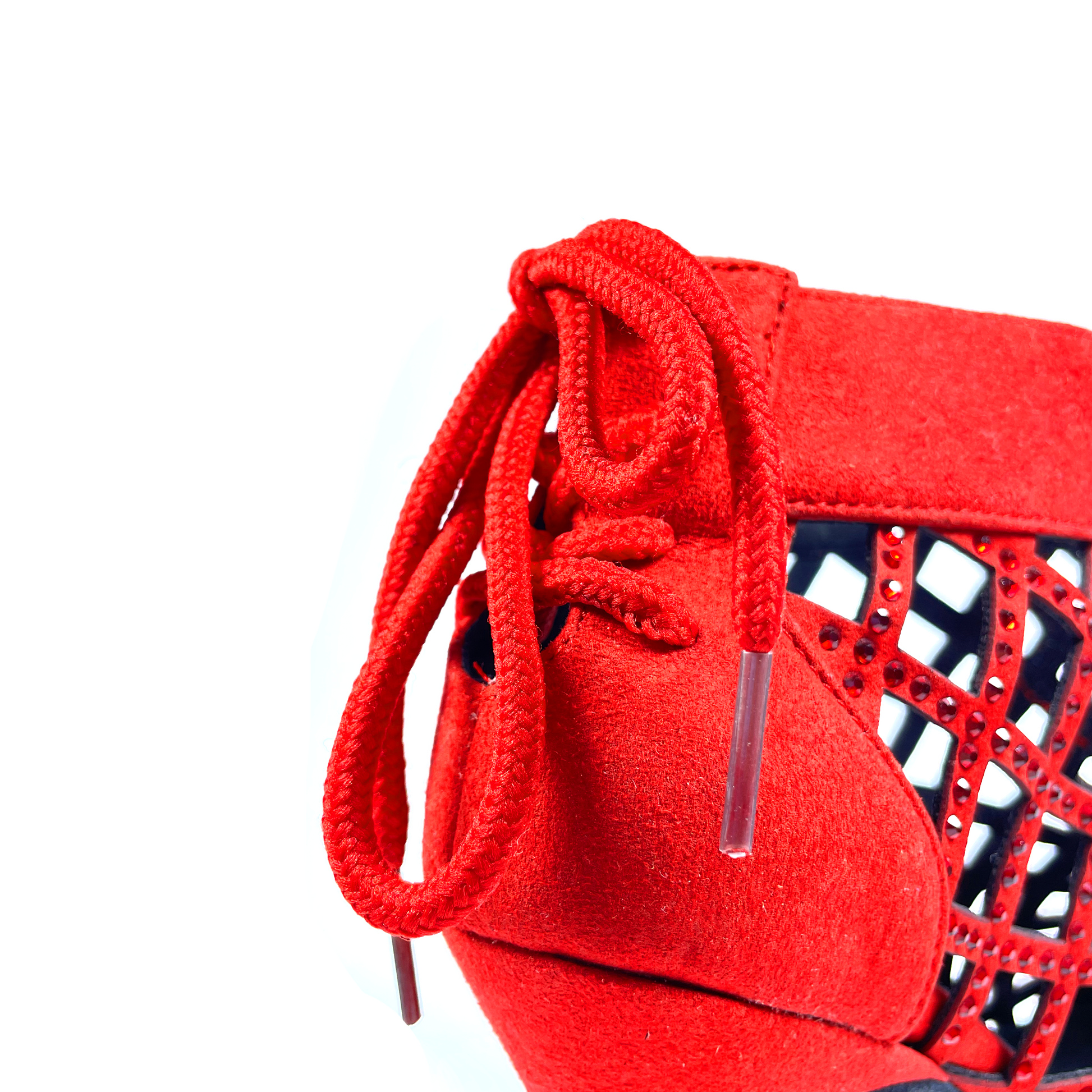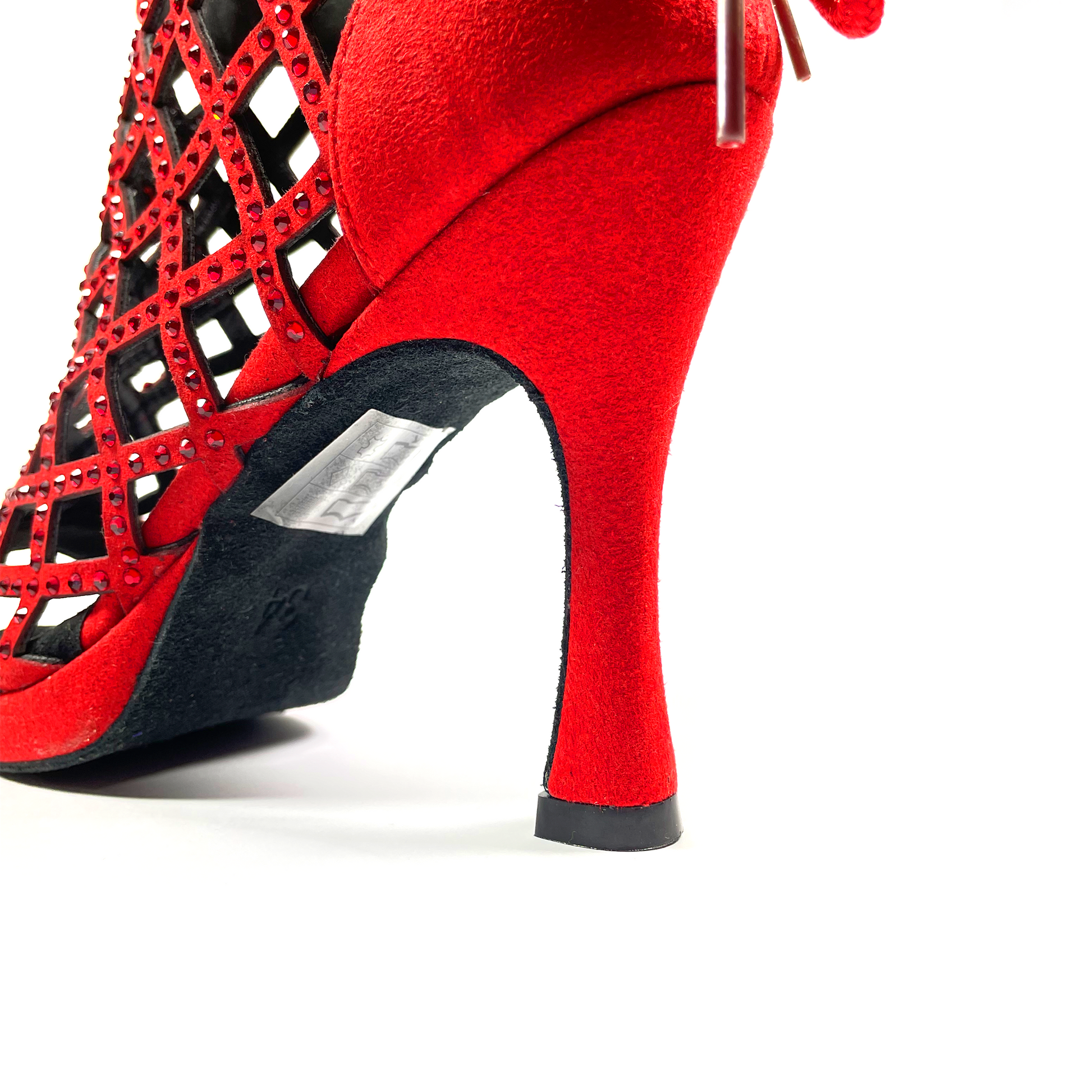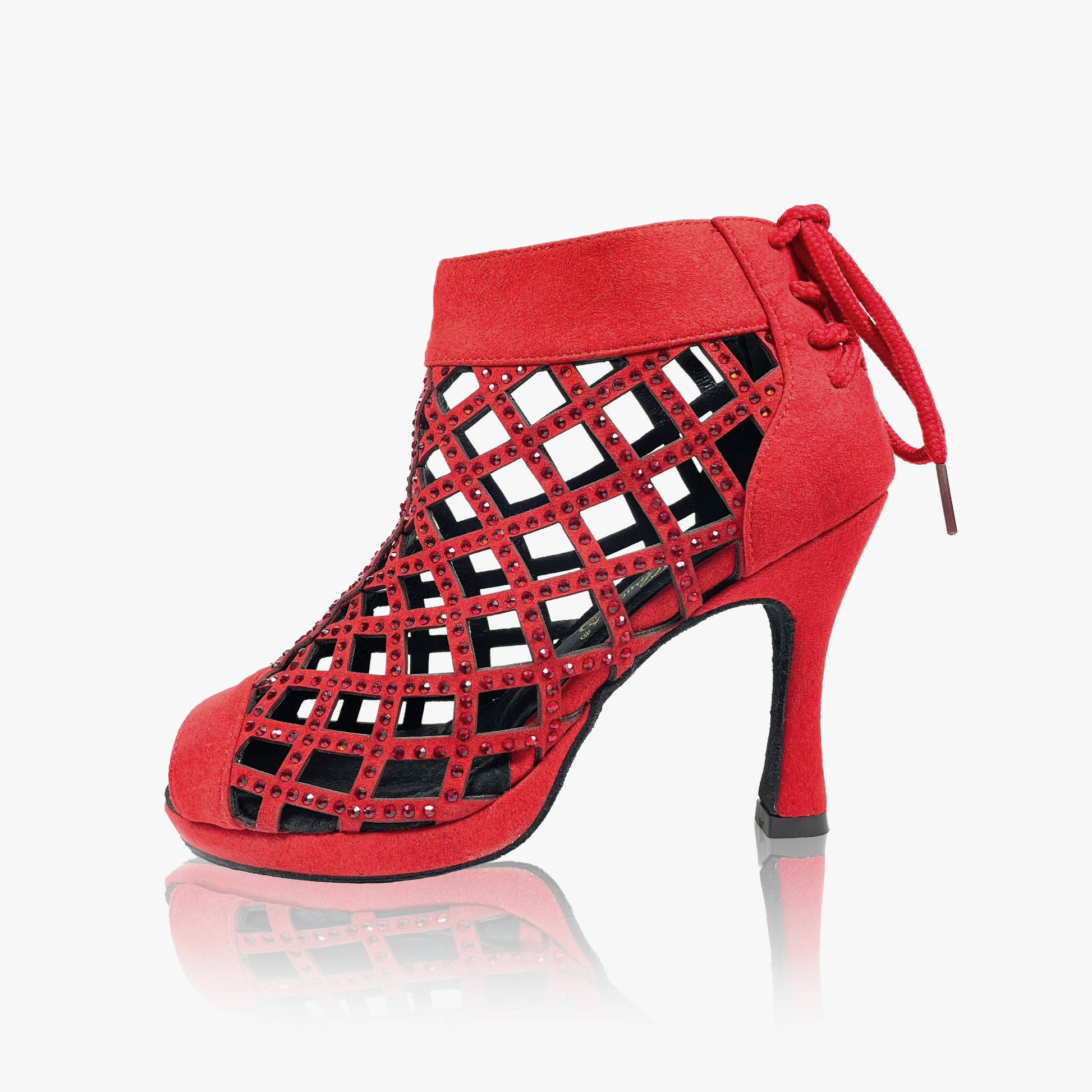 ¡El favorito de muchas!. Botín de baile en nubuck rojo con un diseño actual con acabado de lujo.