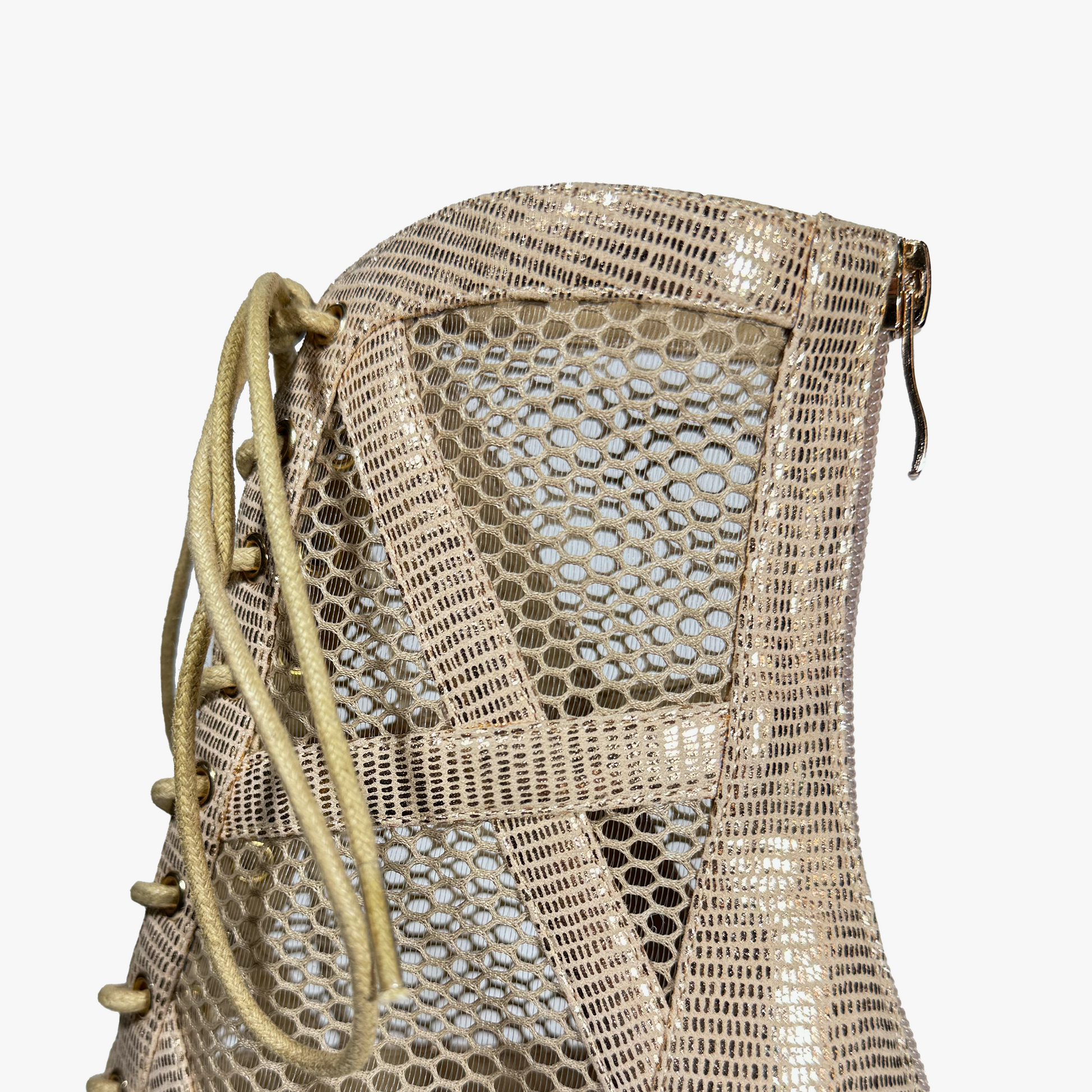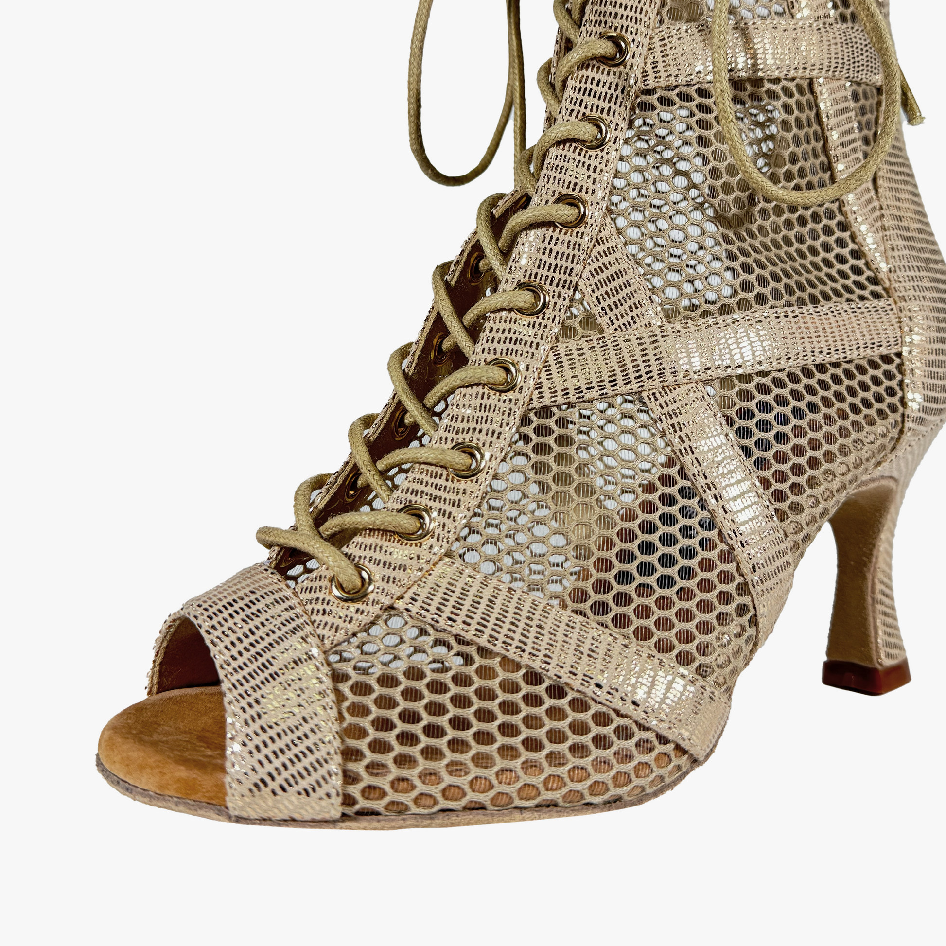 Diseño en PU color nude, redecilla en combinación con el zapato y también red transparente en la parte interior para que no pierda su forma y te dé una sujeción increíble. Punta cerradita y cordones delanteros asegurando así un ajuste perfecto en cualquier tipo de pies (anchos o estrechos). Banda superior con hebilla lateral lo que aporta un toque diferente y actual.