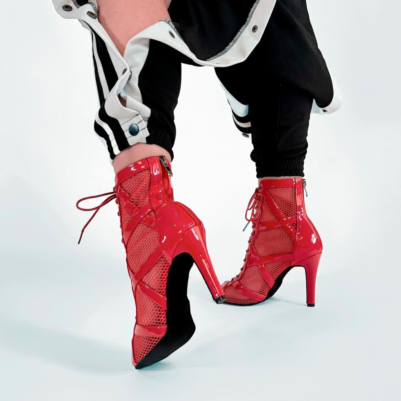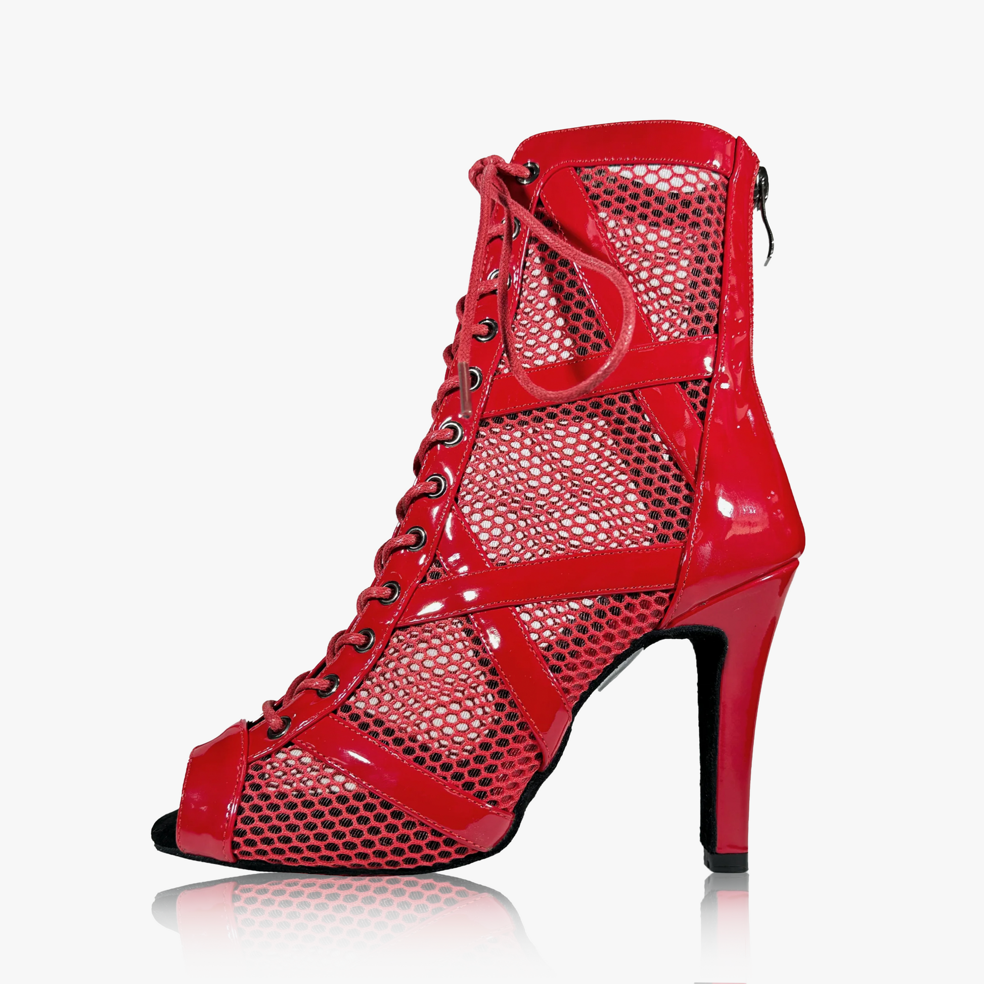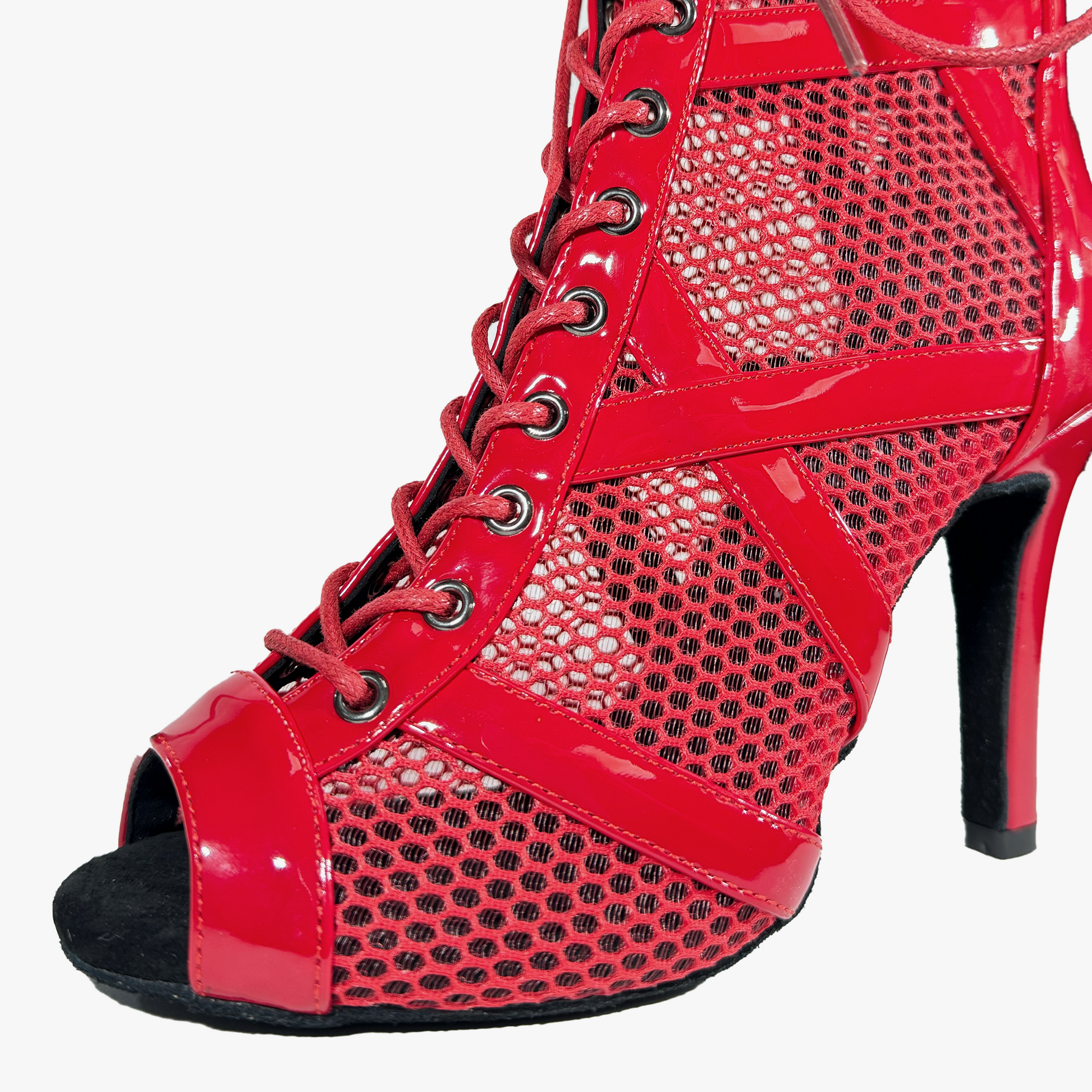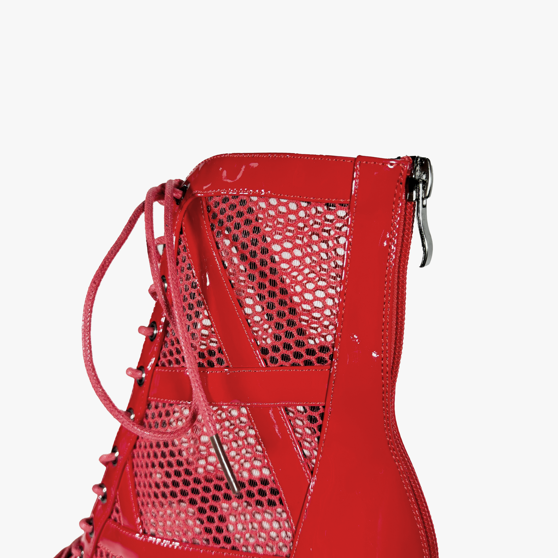 Diseño en brillante PU rojo, redecilla en combinación con el zapato y también red transparente en la parte interior para que no pierda su forma y te dé una sujeción increíble. Punta cerradita y cordones delanteros asegurando así un ajuste perfecto en cualquier tipo de pies (anchos o estrechos).