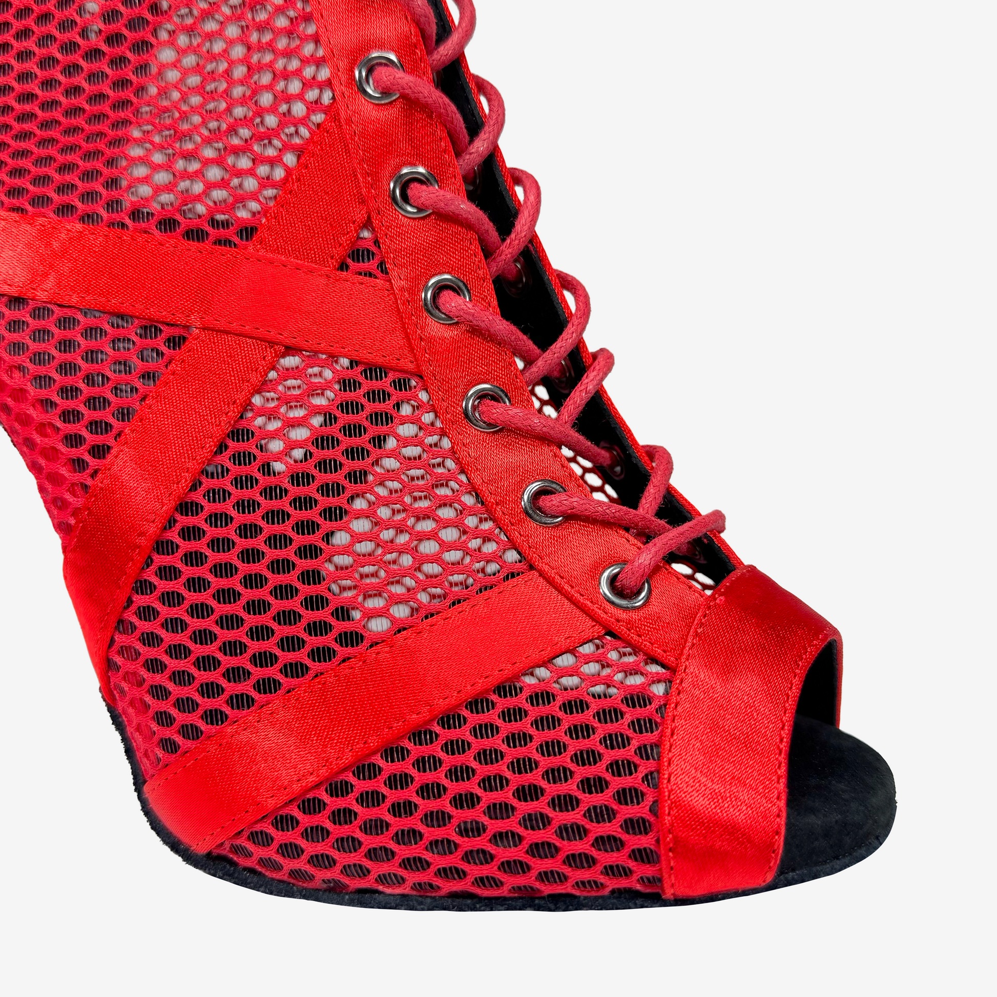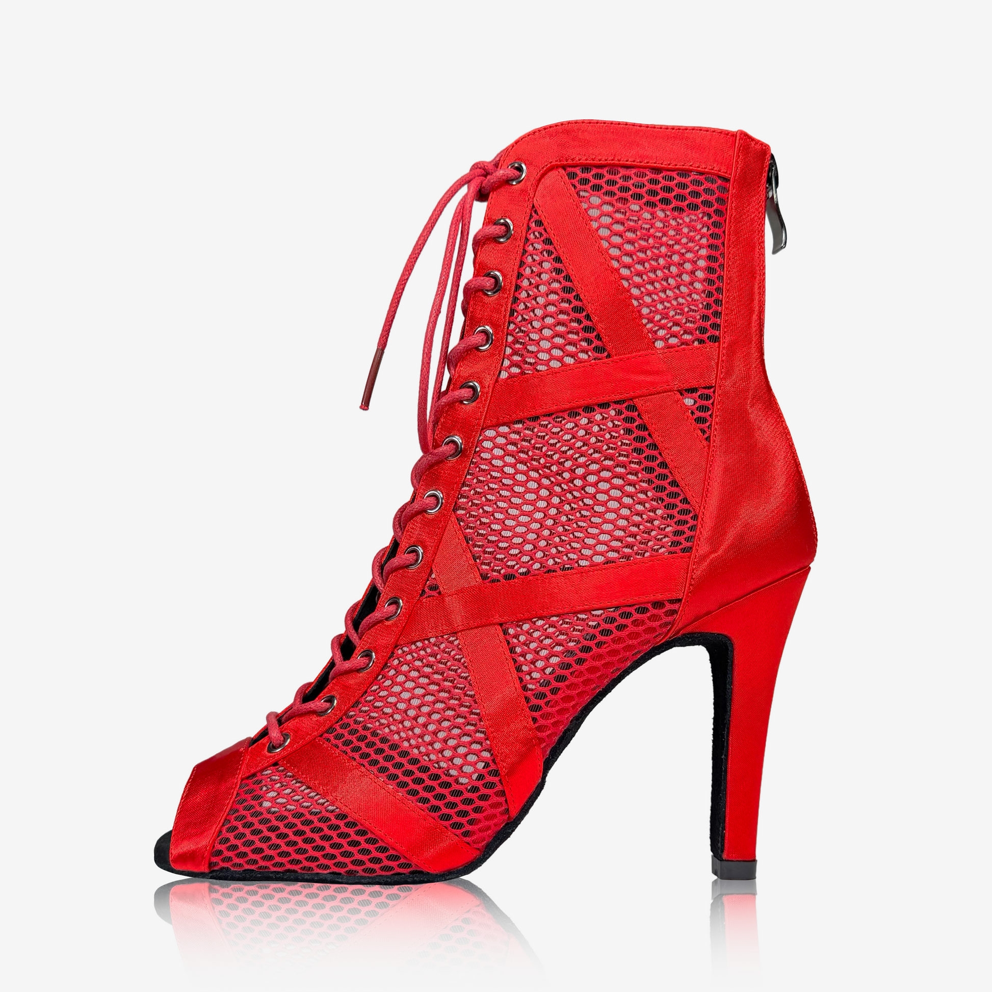 Diseño en satén negro de gran calidad, red fishnet y red transparente en la parte interior para que no pierda su forma y te dé una sujeción increíble. Punta cerradita y cordones delanteros asegurando así un ajuste perfecto en cualquier tipo de pies (anchos o estrechos).