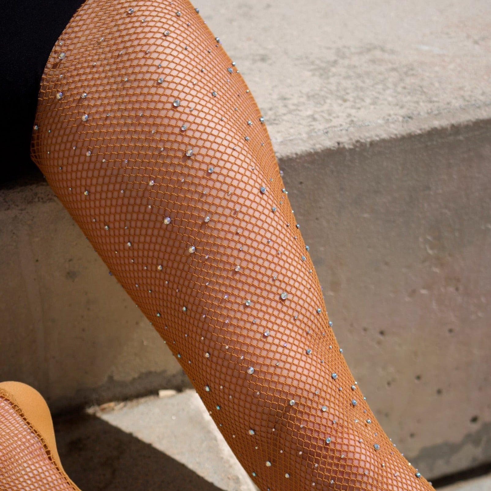 Medias de rejilla deportivas elásticas, Con las medias de rejillas se obtiene mejorar el aspecto de las piernas, disimular imperfecciones y ofrecer un aspecto uniforme. Decoradas con pedrería hotfix.